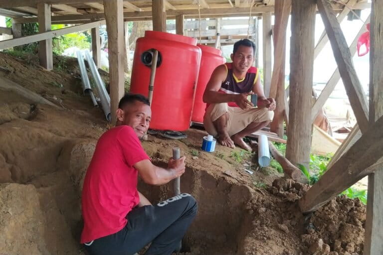 Melihat kondisi kampung di Sekadau Hilir masih banyak bergantung pada jamban sungai karena tangki septik mudah rusak kena banjir, mereka gunakan gentong sebagai alternatif.